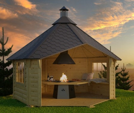 Se alle detaljerArnøy gapahuk 9m² med grill og benker 22532 Her er våre gapahuker til de som vil ha et vidstrakt og nært forhold til naturen rundt. Den ene modell...