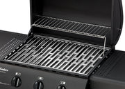 Grillen er utstyrt med praktiske oppbevaringsplasser for grillredskap og gassbeholder under.