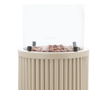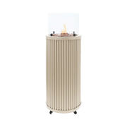 Cosipillar Curved er en rund, søyleformet gasspeis i sandbeige aluminium som umiddelbart tiltrekker seg oppmerksomhet i ethvert uterom. Den kombinerer funksjon og design på en elegant måte, og passer like godt i moderne, industrielle som mer klassisk designede hager og terrasser.