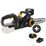 Motorsagen leveres med et 10" (25 cm) sverd i høy kvalitet fra Oregon, og den kan enkelt sage gjennom trestykker med samme diameter. Automatisk kjedesmøring og verktøyfri kjedestramming gjør den til en svært praktisk sag å bruke. Batteri og hurtiglader medfølger, og batteriet kan også brukes i hele TEXAS’ 20V-serie.