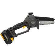 TEXAS CHX2000 er en lett enhånds motorsag på batteri, utviklet for hageeiere som ønsker en enkel og effektiv løsning til mindre sageoppgaver. Med en vekt på kun 1,2 kg og et sverd på 12,5 cm, er CHX2000 ideell for trimming av tykkere grener og mindre trær.