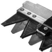 Skjæresystem med metallkniver og 42 mm mellom tennene – håndterer grove stengler.