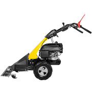 Selvgående fremdrift på 2,5 km/t via robuste, punkteringsfrie hjul (13") med traktormønster.