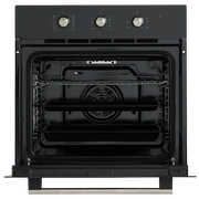 • •Sort 3-lags glassdør og emaljert ovnsrom