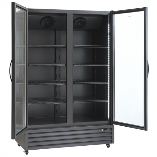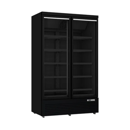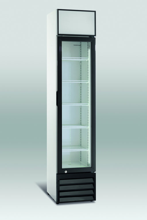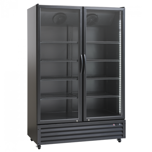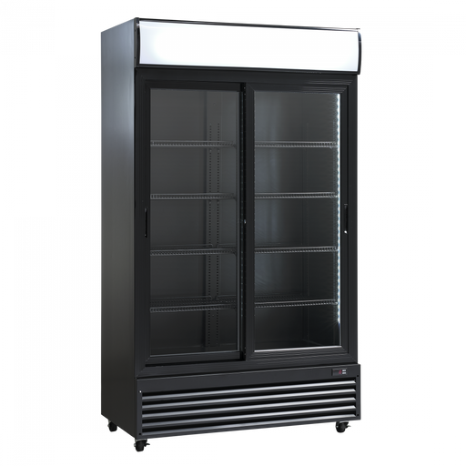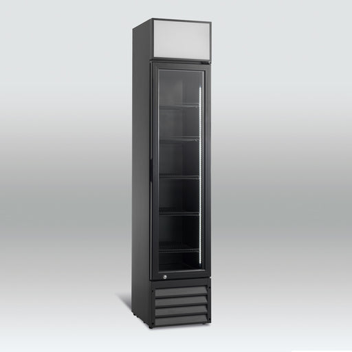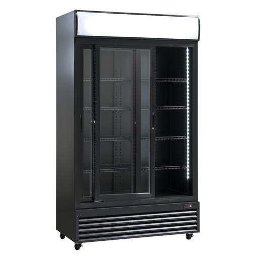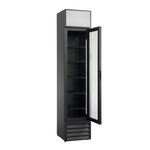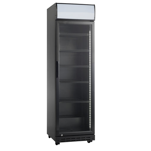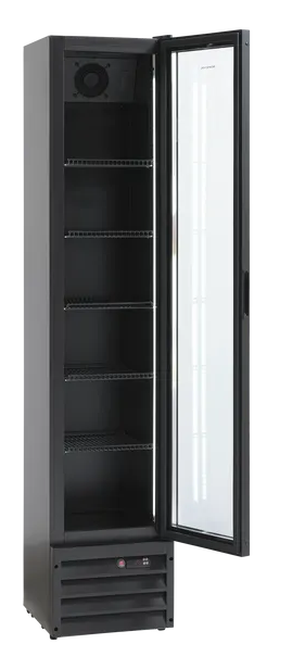 ScandomesticScandomestic display kjøleskap sort 198 cm SD 430 BE SD 430 BE er et stort 1-dørs displaykjøleskap med 392 liter netto kjølerom. Det egner seg spe...