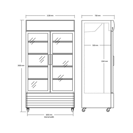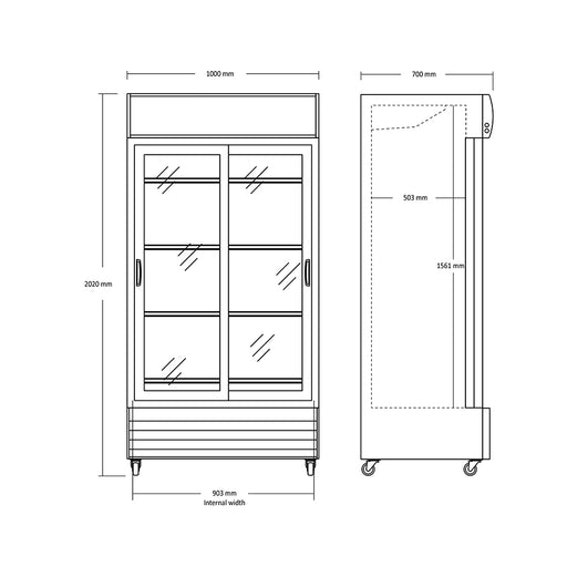 ScandomesticScandomestic kjøleskap med skyvedør, modell SD 1002 SLE Produktmål, H x B x D, mm 2023 x 1130 x 700 Bruttovolum, liter 764 Klimaklasse T ...