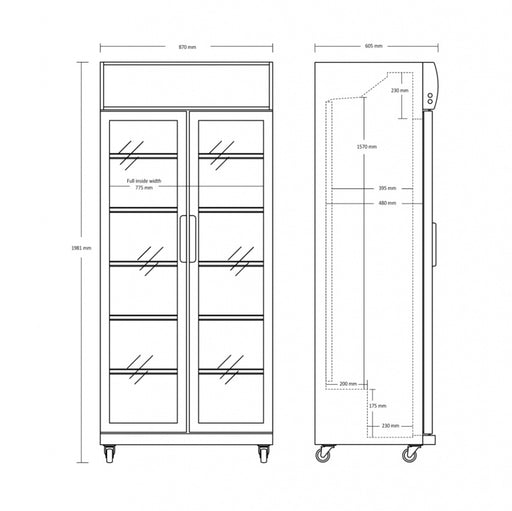 ScandomesticScandomestic displaykjøleskap i sort 200 cm DC1080BB Varenr.: 25311110000DC1080BB Produktmål, HxBxD, mm 2003 x 1253 x 710 Klimaklasse 3 Brutt...