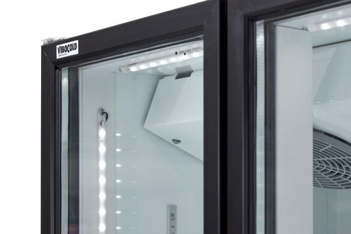 Se alle detaljerVibocold display kjøleskap med skyvedører sort 200 cm VD 900