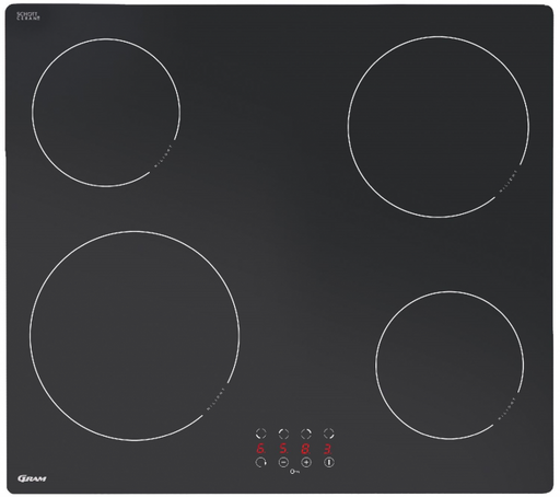 GramKK 6400-90 Gram Glasskeramisk koketopp 60 cm Glasskeramisk koketopp med rette kanter. Oppvarmingsautomatikk og stor 21 cm kokesone forrest. 4 ko...