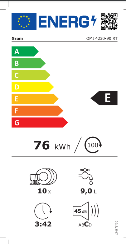 GramGram helintegrert oppvaskmaskin OMI 4230-90 RT Gram oppvaskmaskin, 10 kuverter, hvit Energiklasse: E Kapasitet: 10 Produktdimensjoner HxBxD: 820 m...