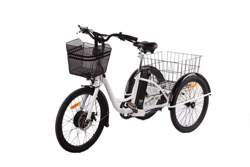 e-servPolar Nova elektrisk trehjulssykkel 500W smale hjul Hjulstørrelse: 24*1.95" innova dekk Lavt innsteg Kurv foran og bak inkludert Skjermer på alle ...