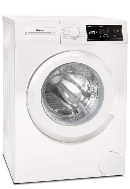 GramGram vaskemaskin i hvitt 84,5 cm WDE 71814-92 Vaskemaskin i hvitt, vaskekapasitet 8 kg. Display med forsinket start og resttidsvisning. Energikl...