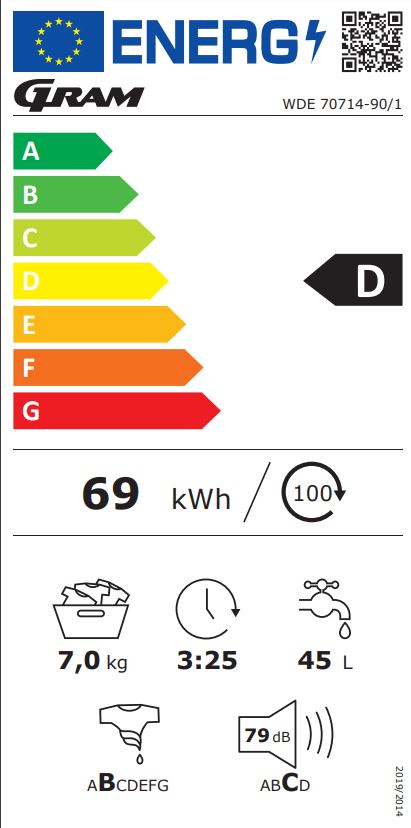 Se alle detaljerGram vaskemaskin 7 kg WDE 70714-90/1