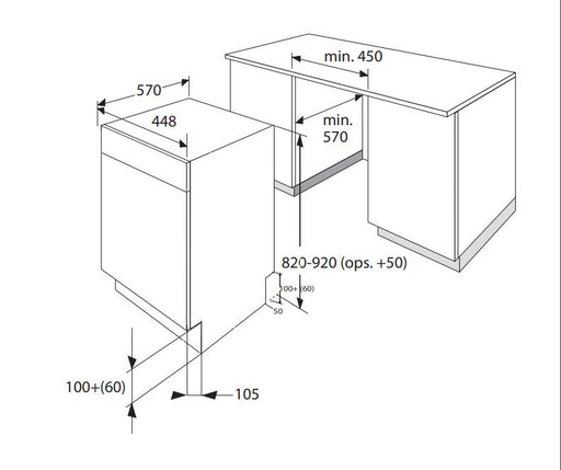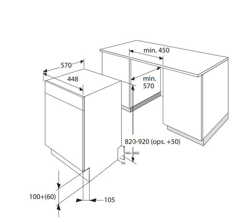 GramGram oppvaskmaskin 45 cm for underbygging i stål OM 4330-90 RT X/1 Oppvaskmaskin for underbygging i rustfritt stål med plass til 10 kuverter, 8 p...