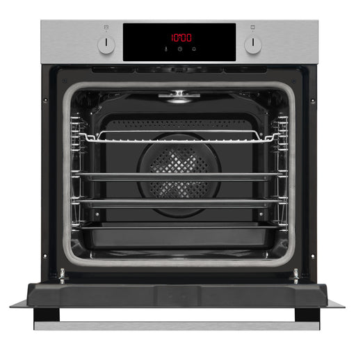 GramPyrolyseovn i EasyOff Steel IOP 18643-90 X Multifunksjonsovn med 12+1 funksjoner , bl.a. ekte varmluft, tine- og pizzafunksjon. Pyrolyserengjøring ...