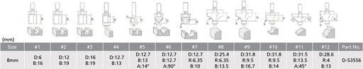 Makita fresesett d-53556 12-deler, 8mm