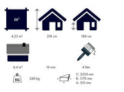 Praktisk redskapsbod på 4.23 m². Med dobbeldør i front for enkel tilgang. Materialtykkelse er 16 mm og boden er 180cm x 235 cm. Leveres med alt av festemateriell, taktro og gulv.