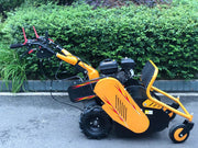 Styret er fullt justerbart – både i høyde og sideveis – for optimal ergonomi og brukertilpasning. Startsystemet er utstyrt med rekylstart, og maskinen har tre gir forover og ett reversgir, noe som gir god kontroll under bruk.