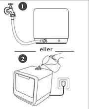 Trenger ikke påfyllingslange. Vanntank på maskin. Vanntank og vanntilkobling