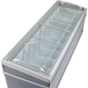 Fryseren leveres med buede, gjennomsiktige skyvedører som holder ekstra kaldt og har sterke aluminiumshåndtak.