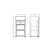 Skapet leveres med 2 svarte trådhyller som er justerbare for fleksibel plassering. Det har 4 justerbare føtter, slik at det kan stå stabilt på alle overflater. SC 81 BE har en høyrehengslet dør som lukkes automatisk, noe som minimerer temperaturstigning.