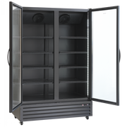 Leveres med 8 svarte, kraftige trådhyller som tåler 37 kg og som sørger for at alle typer glass, bokser og flasker står stabilt på hyllene. Hyllene kan justeres i mange nivåer. Skapet har 4 kraftige hjul, hvorav 2 har bremser, slik at det alltid er mulig å flytte det, selv når det er fullt. Skapet har hengslede dører med lås slik at det kan låses. Dørene lukkes automatisk, noe som alltid minimerer temperaturøkninger.