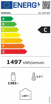 SD 1502 BHE er et stort kjøleskap med 3 dører og 1383 liter kjøleplass.