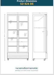 SD 826 BE er et stort 2-dørs displaykjøleskap med 788 liter netto kjølerom. Dette displaykjøleskapet er svært godt egnet for impulssalg og fremhever produktene på en flott måte. Hyllene kan justeres i mange nivåer, slik at flasker, bokser og annet står stabilt og pent representert i kjøleren.