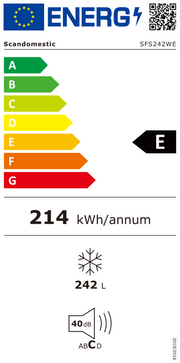 SFS242WE – Stor fryser med 242 liter netto frysekapasitet og statisk innfrysning