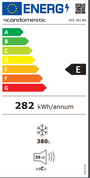 Stor fryser med 380 liters kapasitet og selv-tinende fryseteknologi.
