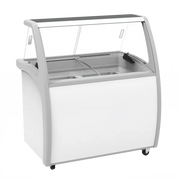 Denne isdisken er utviklet med fokus på både funksjonalitet og presentasjon, og leveres med en elegant, buet glasskjerm som gir effektiv hygienebeskyttelse.