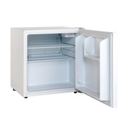 SKS56WE er et lite hvitt, energieffektivt kjøleskap med en 47-liters kjøler som inneholder 2 hyller og 2 dørhyller. Kjøleskapet er ideelt for rom, garasje etc.
