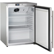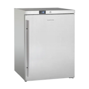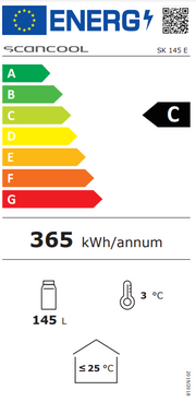 SK 145 E er et 1-dørs kjøleskap med et rustfritt kabinett og en netto kjølekapasitet på 145 liter. Med en høyde på 82 cm er det mulig å plassere skapet under et bord. Temperaturområdet for kjøling er mellom 0-10°C.