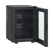 Et stilig og kompakt kjøleskap med display, perfekt for kontorer, hotellrom, hytter, båt eller som ekstra kjøling hjemme.