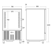 Scancool blast chiller/fryser GBC 10 har plass til 10 stk. GN 1/1 eller 10 stk. euronorm.