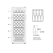 WC105BG har et innvendig volum på hele 201 liter, fordelt på 4 solide hyller i bøk. Hyllene er justerbare, slik at du kan tilpasse innredningen etter flaskenes størrelse. Den horisontale LED-belysningen lyser opp flaskene og gir en flott presentasjon av vinsamlingen din, samtidig som LED-lys bruker lite strøm og har lang levetid.