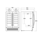 • Utvendige mål (HxBxD): 865 x 595 x 570 mm
