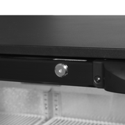 Backbar-kjøleskapet er ideelt for travle barmiljøer og har et moderne utseende med svart eksteriør og stukkaturert aluminiumsinteriør.