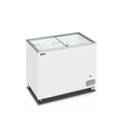 IC-SC fryseren er en rimelig og kompakt display-kymmefryser. Den er ideell for oppstartsbedrifter, sesongsalg osv. Kummefryseren er meget stabil og solid bygget, men er også utstyrt med hjul, slik at den er lett å flytte rundt i butikken. Denne rimelige kompaktfryseren kommer i flere størrelser, noe som gjør den perfekt for mindre butikker og delikatesser med begrenset plass, samt større butikker, bensinstasjoner, supermarkeder osv. Alle størrelser er miljøvennlige og kan dekoreres for å skape en bedre presentasjon av enhetens innhold. Fryseren er ideell for å presentere frosne varer, inkludert ispinner og ispinner. Temperaturen kan holdes rundt -14°C for iskrem eller rundt -21°C for annen frossenmat. Alle størrelser har glasslokk med lås. For å holde enhetene rene er de utstyrt med avløp for kondensvann.