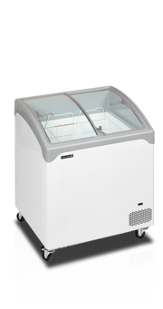 NIC-SCEB-fryseren er en kompakt display-kymmefryser i elegant design. Fryseren har avrundede hjørner, buede kanter og et flatt glidende glasslokk. Fryseren er meget stabil og solid bygget, men er også utstyrt med hjul, slik at den er lett å flytte rundt i butikken. Modellen finnes i flere størrelser. Størrelsesvariasjonen gjør denne modellen spesielt egnet for mindre butikker og delikatesseforretninger med begrenset plass samt større butikker, bensinstasjoner, supermarkeder etc. Alle størrelser er miljøvennlige og kan innredes for å skape en bedre presentasjon av enhetens innhold. NIC-SCEB-serien har en nedre front og et buet glidende glasslokk for bedre visuell presentasjon av fryserens innhold. Dette gjør fryseren enda mer ideell for å presentere frosne varer, inkludert ispinner og ispinner. Temperaturen kan holdes på rundt -14°C for iskrem eller -21°C for annen frossenmat. Alle størrelser har glasslokk med lås. For å holde enhetene rene er de utstyrt med avløp for kondensvann.