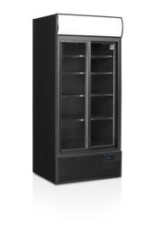 FSC-serien er displaykjølere med lys topp. Dette gir mulighet for individuell dekorasjon, noe som gjør produktet iøynefallende og stimulerer til impulskjøp. Skapet holder drikkene kalde mens de presenteres og promoteres på best mulig måte. Denne modellen har sort eksteriør og interiør som standard. Det sorte eksteriøret gir et svært presentabelt utseende, mens det sorte interiøret fremhever og presenterer innholdet optimalt. – Spesielt med innebygget LED-lys, som lyser opp innholdet fra topp til bunn. Et ideelt valg for eksklusive kafeer, delikatesser og konditorier. Leveres med 5 justerbare sorte trådhyller, 2 selvlukkende glassskyvedører og to vertikale LED-lys i full lengde inne i skapet samt LED-lys i lystopp.