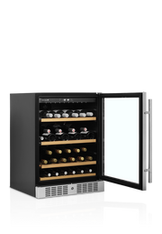 Med et vinkjøleskap i rustfritt stål får du en fin og moderne måte å vise frem vinflaskene dine på. Dette bidrar til både glassdøren, det sorte interiøret og LED-belysningen. De uttrekkbare hyllene er laget av tre, og de er både praktiske og fine å se på. I tillegg byr vinkjøleskapet også på et moderne kjølesystem som reduserer både varmeutslipp, lydnivå og energiforbruk