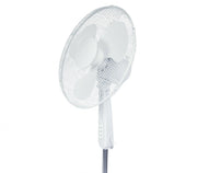 Viften er 40cm, tiltbar, oscillerende og høyden er justerbar.