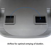 Med tømmestasjonen tømmes robotens støvbeholder raskt og effektivt med en kraftig gjennomblåsning med en sugekraft på 17000 Pa. Tømmestasjonen har en stor støvpose på 2,5 liter som sørger for automatisk tømming gang på gang uten at du trenger å gjøre noe.
